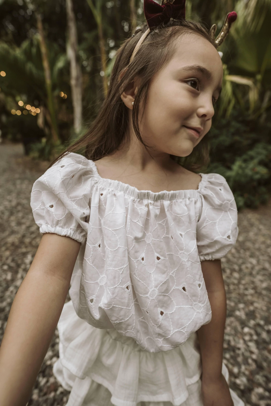 Blusita bordada de Bordery blanco ,pensada para abrazar la infancia con suavidad. Su escote elastizado permite usarla hombros caídos o al natural, mientras las mangas abullonadas aportan un encanto soñador.